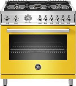 The new Bertazzoni ranges are superb cooking appliances designed, engineered and made in Italy. All Bertazzoni appliances integrate seamlessly into style-harmonized suites for a true, high-performing kitchen. The high-efficiency maintop with 6 brass burners features 2 dual ring 19,000 BTU power-burners that boil water in under 6 minutes (best in class), and 4 additional MonoBloc burners of variable size and power to suit every style of cooking, with delicate simmer at 750 BTUs. The 5.9 cubic feet oven cavity is the largest in its class, with dual convection fan for balanced airflow and even temperature baking and roasting on 7 shelf levels. The elegant large temperature gauge monitors the actual temperature in the oven. The extra wide infrared gas broiler is ideal for grilling and searing at high heat. The oven includes convenient features such as smooth telescopic glides for the oven shelves and soft-close doors. The edge-to-edge interior oven glass door maximizes interior volume and can be wiped clean without effort. All Bertazzoni appliances are covered by a 2-year warranty. Products and packaging are 99% recyclable.