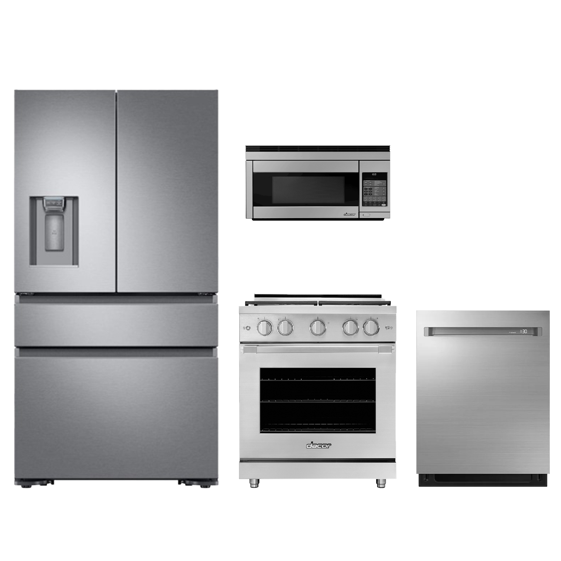 Dacor® 4 Piece Kitchen Package-Stainless Steel with a Counter Depth French Door Refrigerator, Pro Style Natural Gas High Altitude Range, Built In Dishwasher, and Over The Range MicrowaveRead More