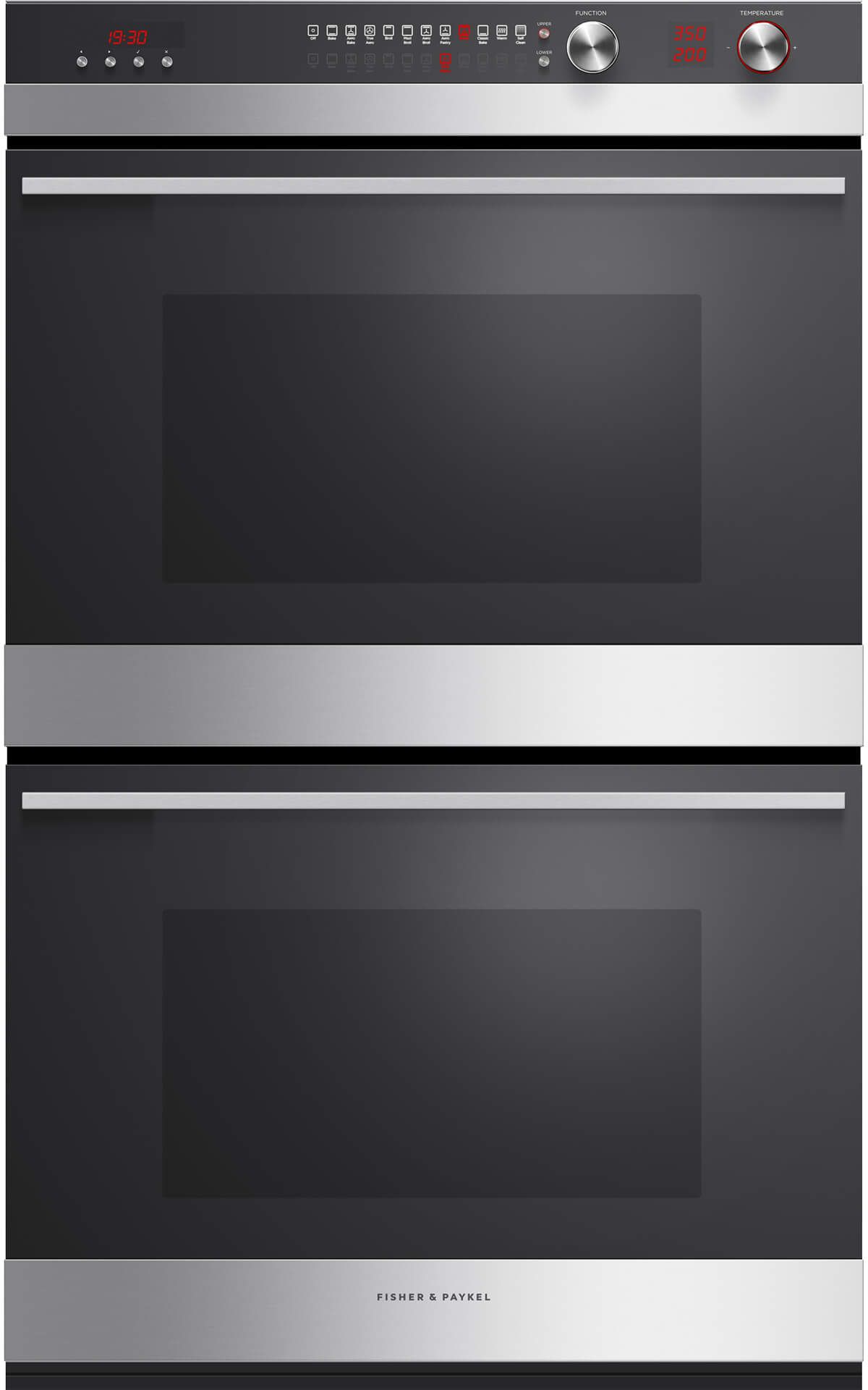 This Fisher & Paykel 30”, 4.1 + 4.1 cu ft double built-in oven with 11 functions provides a large capacity for cooking a number of dishes simultaneously across two ovens.Read More