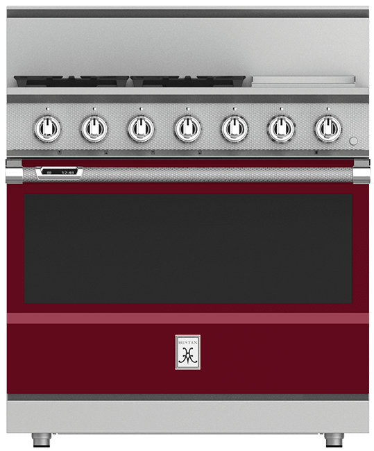 The 36” range delivers searing culinary power with a sealed burner system delivering exceptional temperature control for culinary power up to 23,000 BTUs and as low as 500 BTUs. The 12” commercial-grade stainless steel gas griddle makes breakfast a cinch with superior heating and a thermostat for precise temperature control. The high-performance oven features nine oven modes to perfectly complement your cooking style, and the MarquiseDisplay™ gives you a chef-friendly digital display – conveniently inset right in the oven handle.