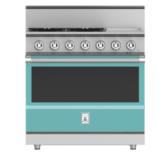 The 36” all gas range delivers searing culinary power with a sealed burner system delivering exceptional temperature control for culinary power up to 23,000 BTUs and as low as 500 BTUs. The 12” commercial-grade stainless steel gas griddle makes breakfast a cinch with superior heating and a thermostat for precise temperature control. The high-performance oven features exclusive PureVection™ technology, which electronically controls multiple heating convection systems, to optimize baking, broiling, roasting and convection baking.Read More