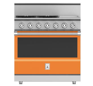 The 36” all gas range delivers searing culinary power with a sealed burner system delivering exceptional temperature control for culinary power up to 23,000 BTUs and as low as 500 BTUs. The 12” commercial-grade stainless steel gas griddle makes breakfast a cinch with superior heating and a thermostat for precise temperature control. The high-performance oven features exclusive PureVection™ technology, which electronically controls multiple heating convection systems, to optimize baking, broiling, roasting and convection baking.Read More