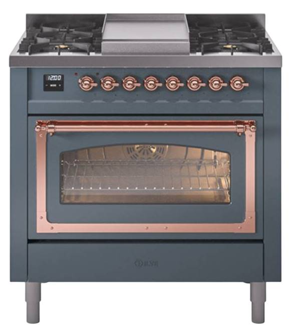 Introducing the new Nostalgie II 36" dual fuel range, a classic addition with a touch of innovation to any kitchen. This range feature sealed burners equipped with total black brass burner that has a non-stick nanotechnological coating, heavy cast iron grates, 3.5 cu. ft. total oven capacity and soft closing door system.Read More