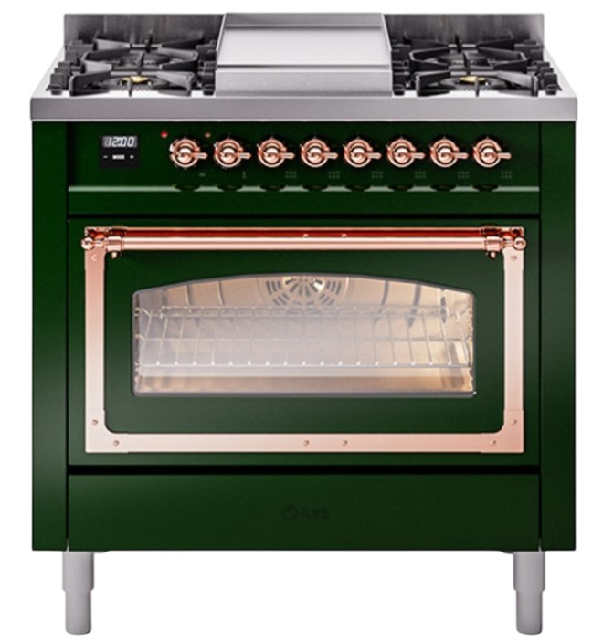 Introducing the new Nostalgie II 36" dual fuel range, a classic addition with a touch of innovation to any kitchen. This range feature sealed burners equipped with total black brass burner that has a non-stick nanotechnological coating, heavy cast iron grates, 3.5 cu. ft. total oven capacity and soft closing door system.Read More