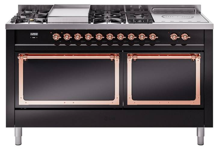 Introducing the new Nostalgie II 60" dual fuel range, a classic addition with a touch of innovation to any kitchen. This range feature sealed burners equipped with total black brass burner that has a non-stick nanotechnological coating, heavy cast iron grates, 3.5 + 2.3 cu. ft. dual oven capacity and soft closing door system.Read More