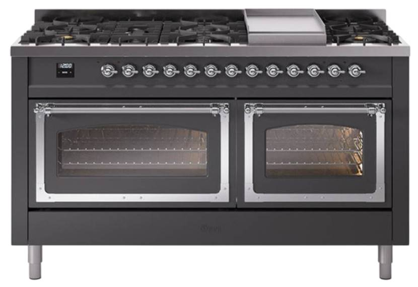 Introducing the new Nostalgie II 60″ dual fuel range, a classic addition with a touch of innovation to any kitchen. This range feature sealed burners equipped with total black brass burner that has a non-stick nanotechnological coating, heavy cast iron grates, 3.5 + 2.3 cu. ft. dual oven capacity and soft closing door system.Read More