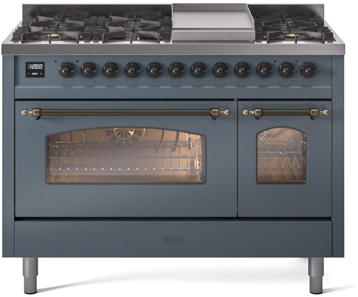 Nostalgie range cookers integrate highly professional technologies and excellent materials with a classic style that is always inspiring. Undisputed protagonists of the kitchen, they offer a complete choice of sizes (from 30 to 60 inches) and various configurations: you can choose the flush-top induction up to 6 cooking zones with bridge function for 48 inches version, single or double oven, standard colors or RAL colors on request, various finishes and accessories. Only available as an option for the Nostalgie collection, Noblesse frames are more than just a detail: they are a fine design feature that frames the front panels, matching the metallic finishes of the handles and knobs. The blind door inspired by the past is another option that elegantly enriches the style of Nostalgie.