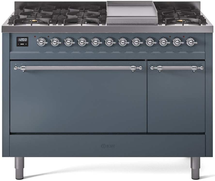 Introducing the new Nostalgie II 48" dual fuel range, a classic addition with a touch of innovation to any kitchen. This range feature sealed burners equipped with total black brass flame spreader that has a non-stick nanotechnological coating, heavy cast iron grates, 3.5 + 1.52 cu. ft. total double oven capacity and soft closing door system.Read More