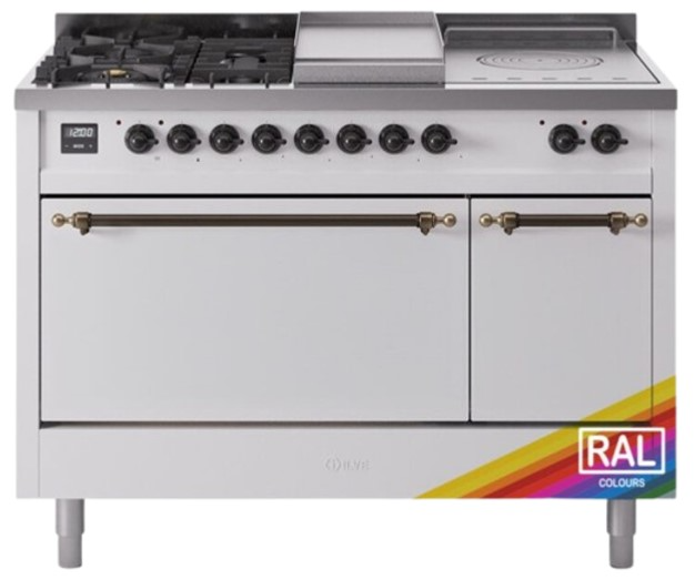 Introducing the new Nostalgie II 48" dual fuel range, a classic addition with a touch of innovation to any kitchen. This range feature sealed burners equipped with total black brass flame spreader that has a non-stick nanotechnological coating, heavy cast iron grates, 3.5 + 1.52 cu. ft. total double oven capacity and soft closing door system.Read More