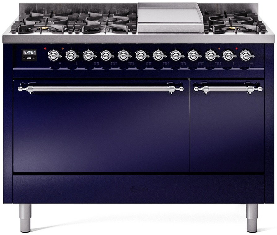 Introducing the new Nostalgie II 48" dual fuel range, a classic addition with a touch of innovation to any kitchen. This range feature sealed burners equipped with total black brass flame spreader that has a non-stick nanotechnological coating, heavy cast iron grates, 3.5 + 1.52 cu. ft. total double oven capacity and soft closing door system.Read More