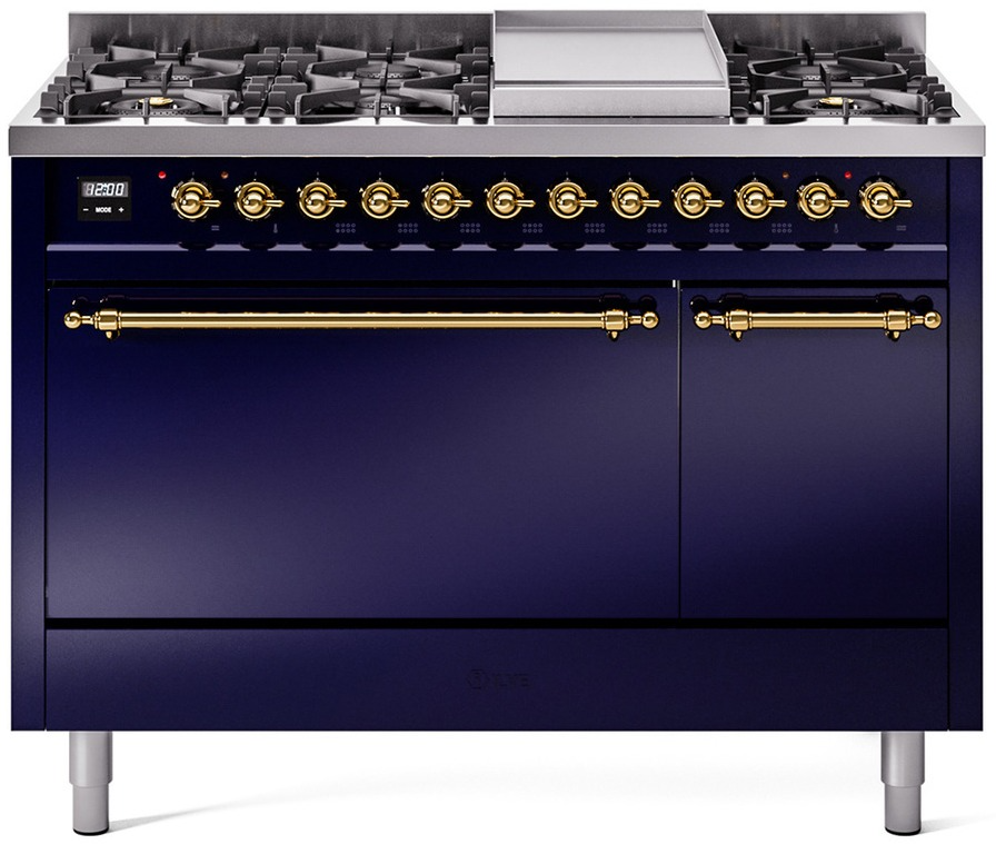 Introducing the new Nostalgie II 48" dual fuel range, a classic addition with a touch of innovation to any kitchen. This range feature sealed burners equipped with total black brass flame spreader that has a non-stick nanotechnological coating, heavy cast iron grates, 3.5 + 1.52 cu. ft. total double oven capacity and soft closing door system.Read More