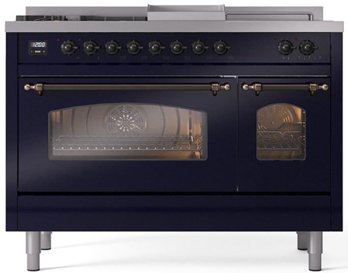 Introducing the new Nostalgie II 48" dual fuel range, a classic addition with a touch of innovation to any kitchen. This range feature sealed burners equipped with total black brass flame spreader that has a non-stick nanotechnological coating, heavy cast iron grates, 3.5 + 1.52 cu. ft. total double oven capacity and soft closing door system.Read More