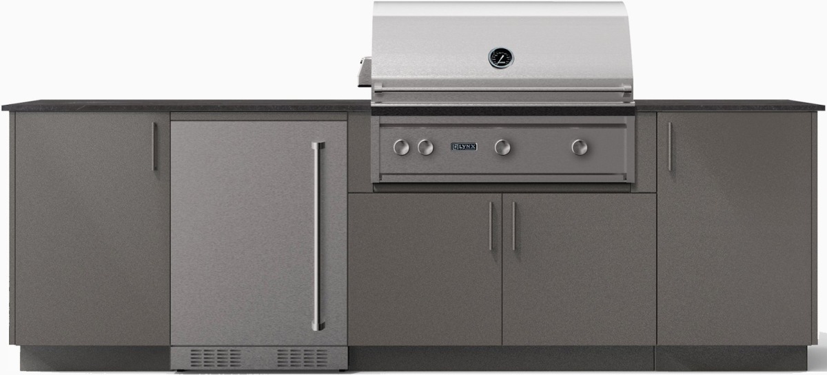 Includes 2 utility cabinets, a grill base cabinet for a 36" built in grill and space for an undercounter appliance