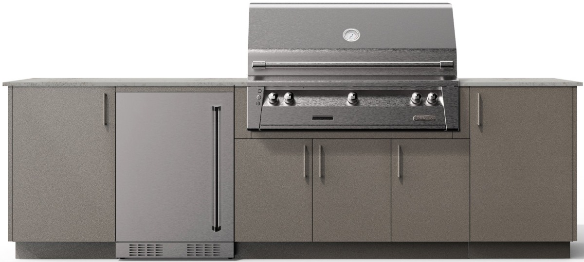 Includes 2 utility cabinets, a grill base cabinet for a 42" built in grill and space for an undercounter appliance