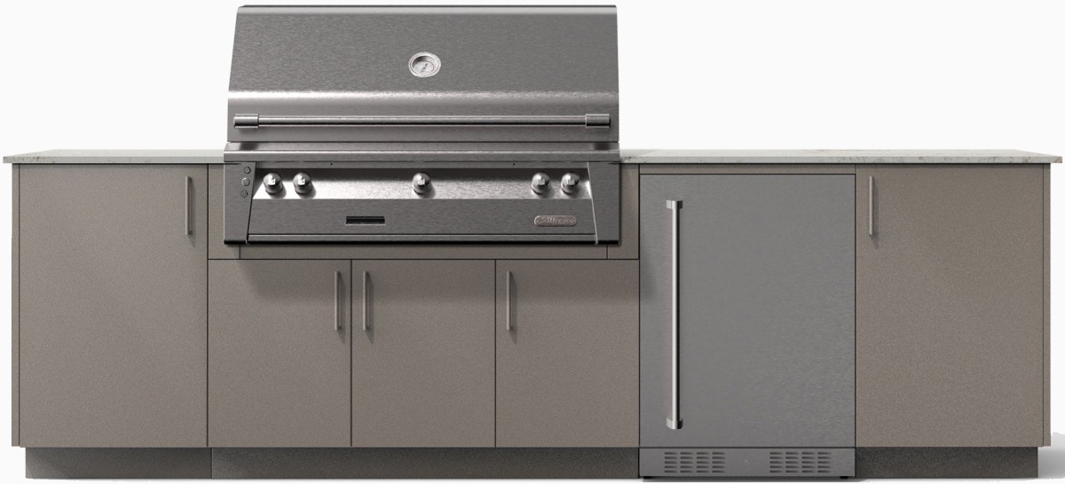 Includes 2 utility cabinets, a grill base cabinet for a 42" built in grill and space for an undercounter appliance