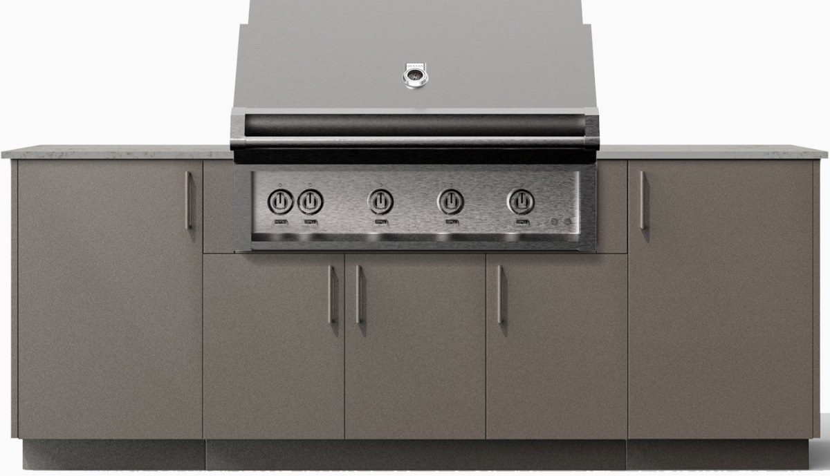 Includes 2 utility cabinets and a grill base cabinet for a 42" built in grill