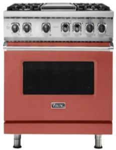 The Viking® Spiced Cider 36" Self-Cleaning Dual Fuel Range with Griddle combines luxury and performance. Featuring a spacious gas cooktop, an self-cleaning oven, and a built-in griddle, it offers precise cooking control and a stylish antique bronze finish for any kitchen.Read More